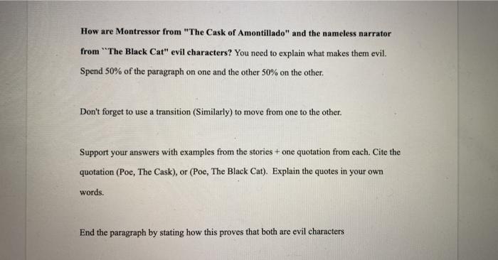 How Are Montressor From The Cask Of Amontillado And Chegg Com